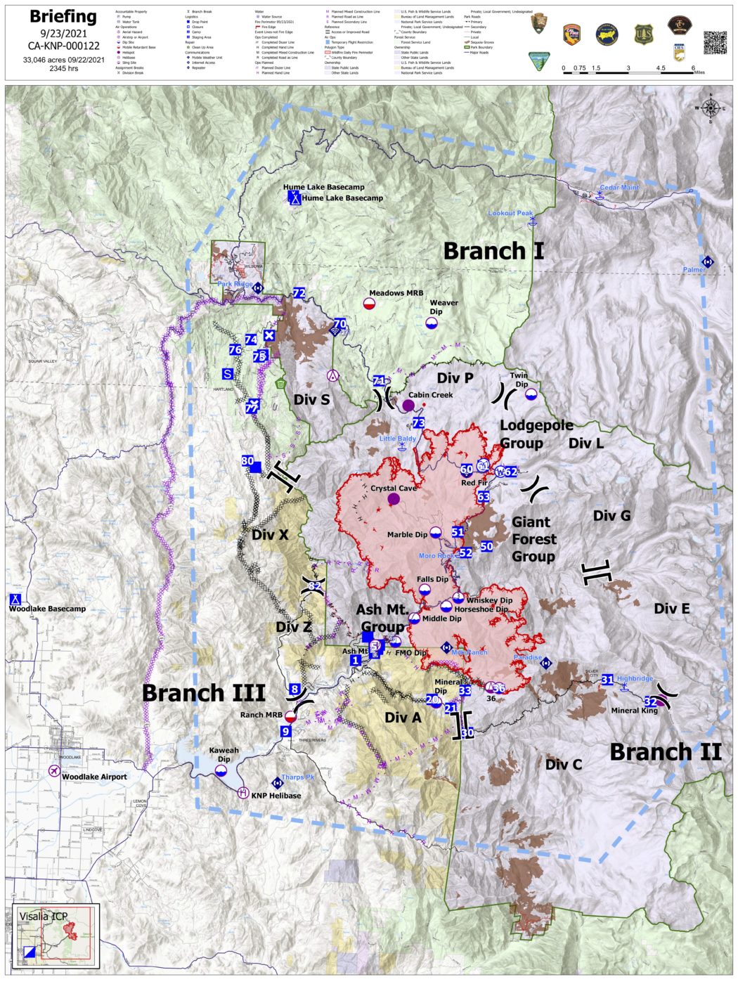 Yesterday the bulk of the work was in Division C in the south and Division S in the north. Division C’s primary objective is to protect outlying communities, including Mineral King, by surging up Mineral King Road.