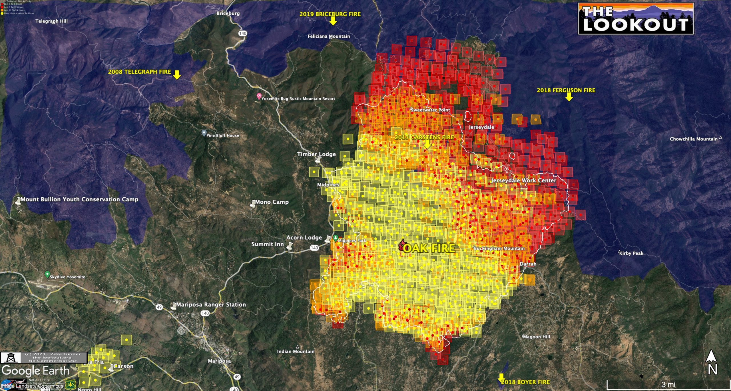 *Our Lookout fire maps are high resolution. Click the maps to open them in a separate window, there you can zoom and scroll around the map to take a closer look around the fire. This is especially helpful to know while viewing our maps on cell phones*