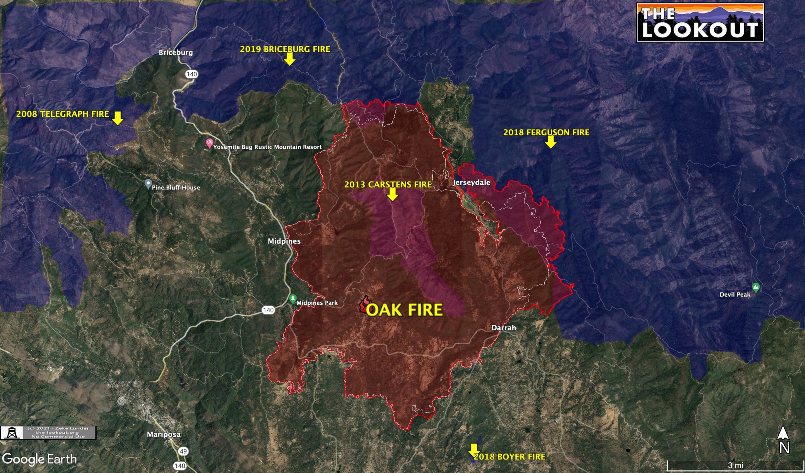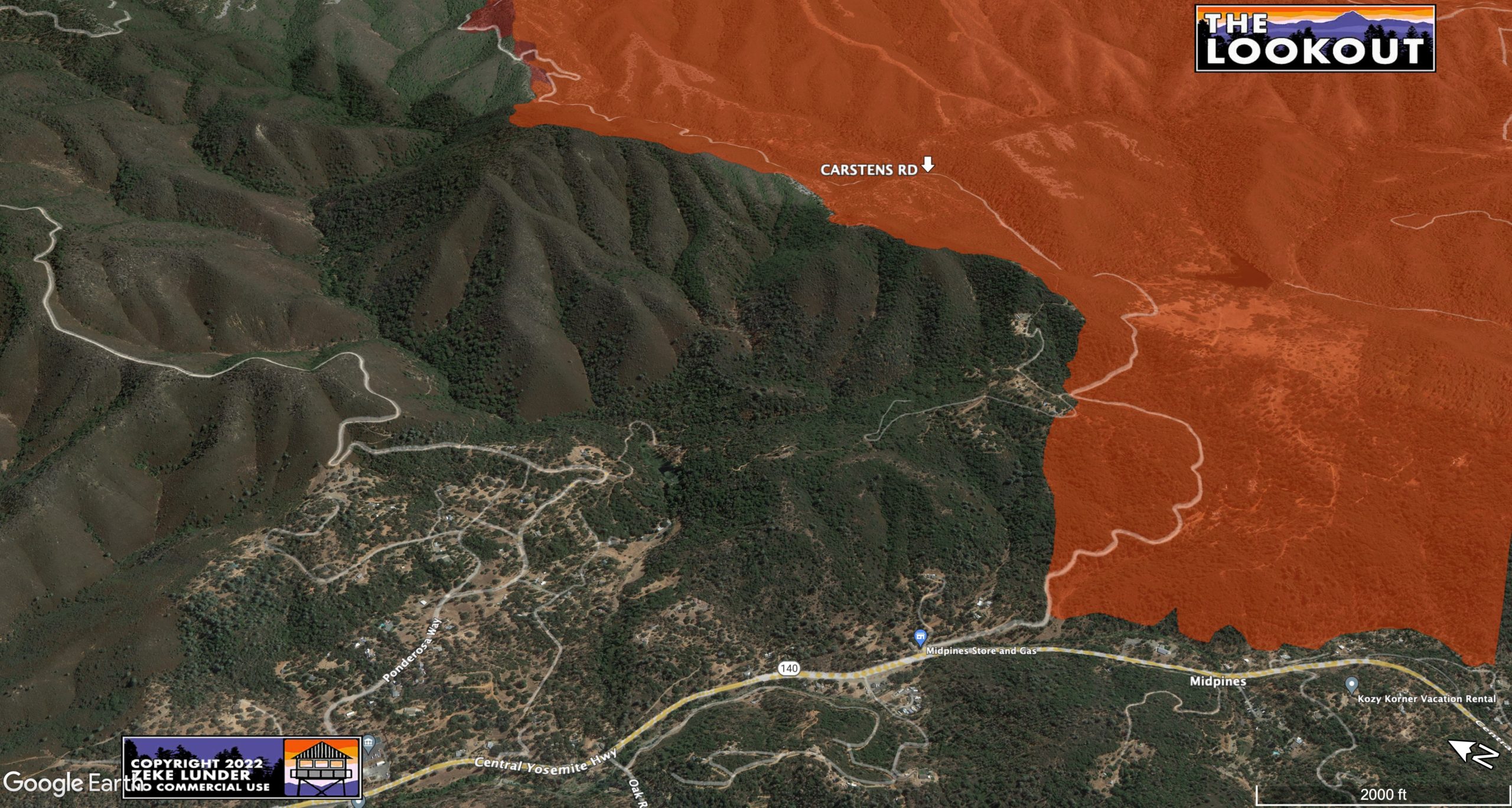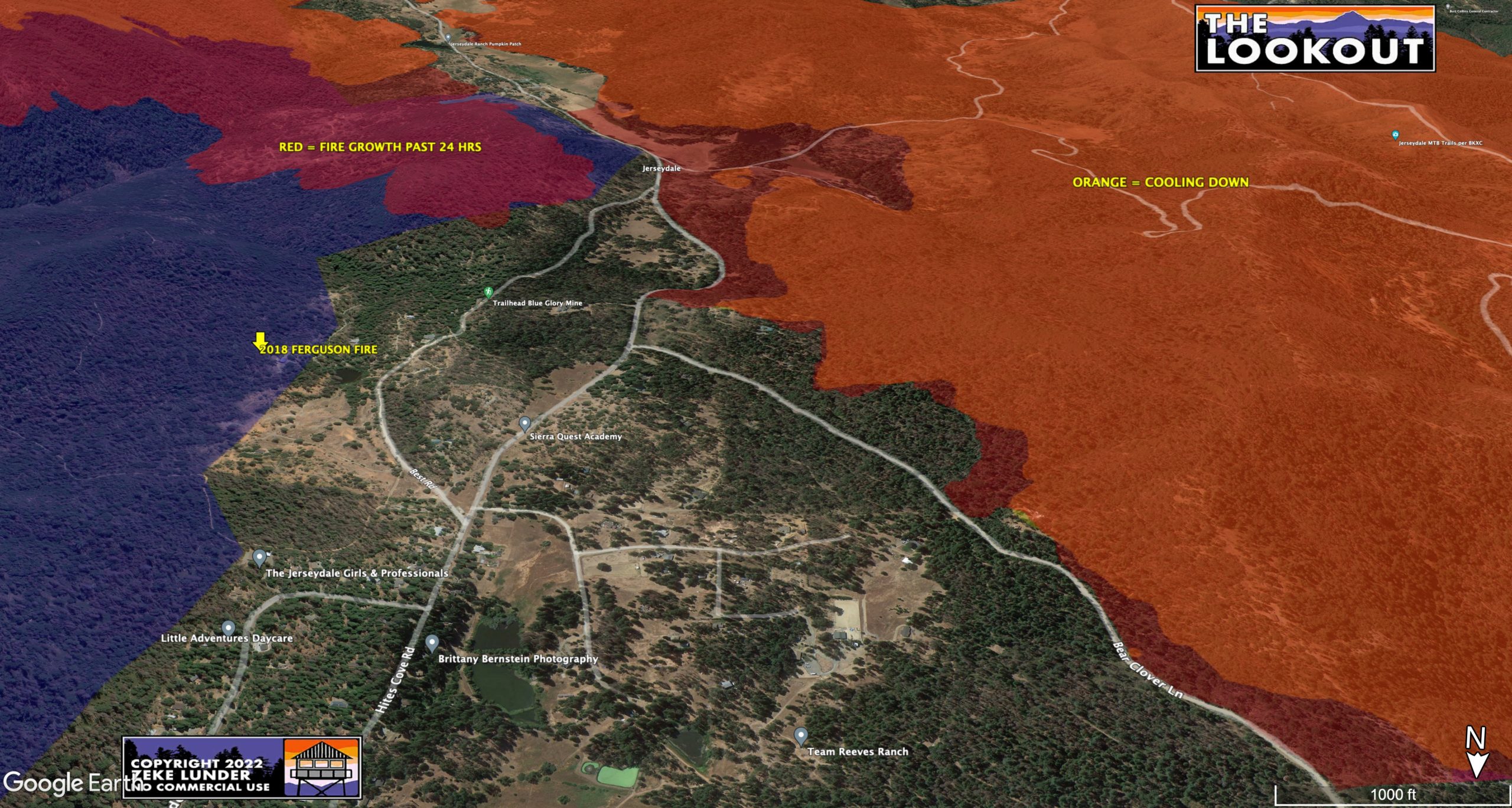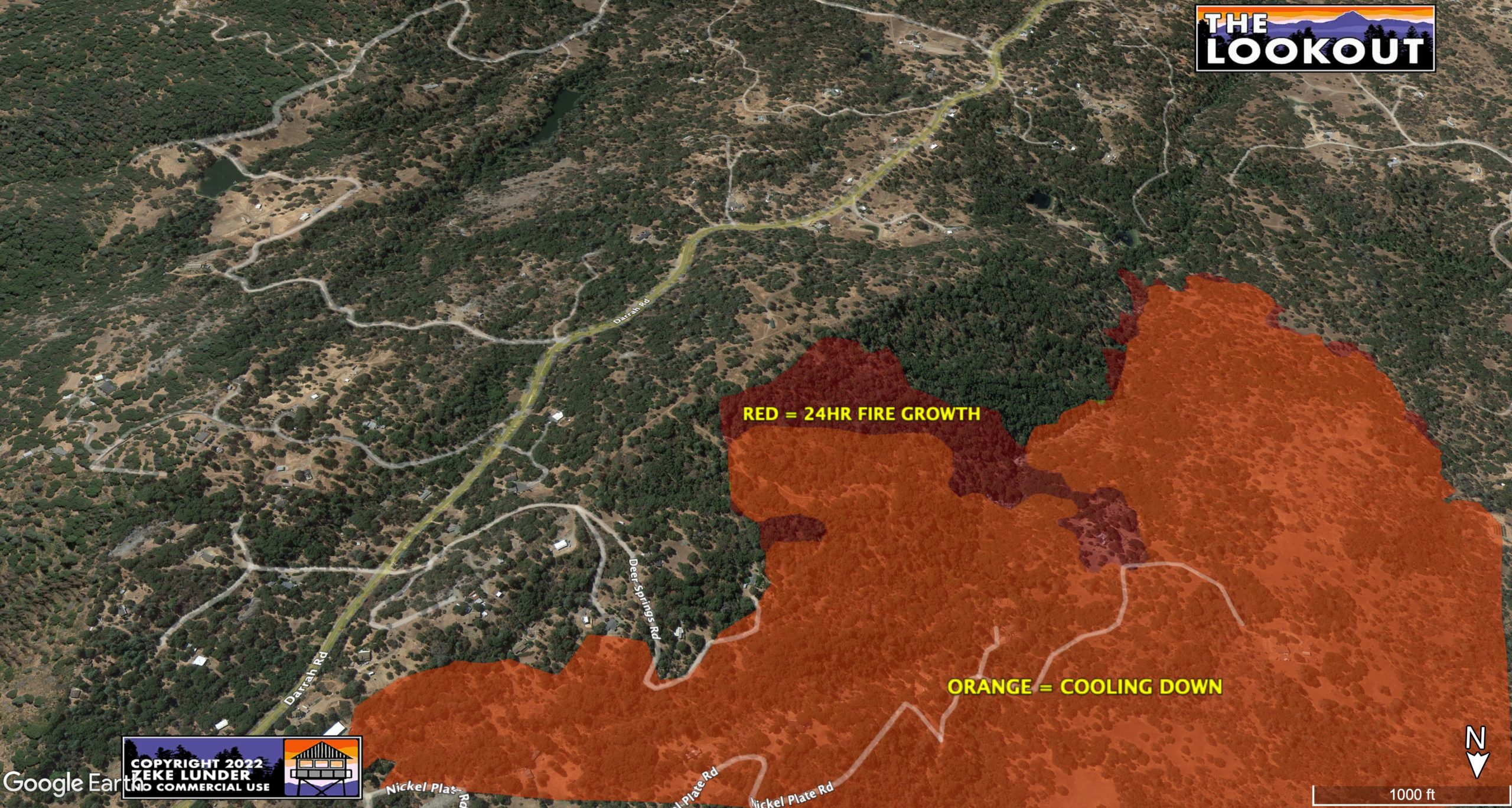 *Our Lookout fire maps are high resolution. Click the maps to open them in a separate window, there you can zoom and scroll around the map to take a closer look around the fire. This is especially helpful to know while viewing our maps on cell phones*