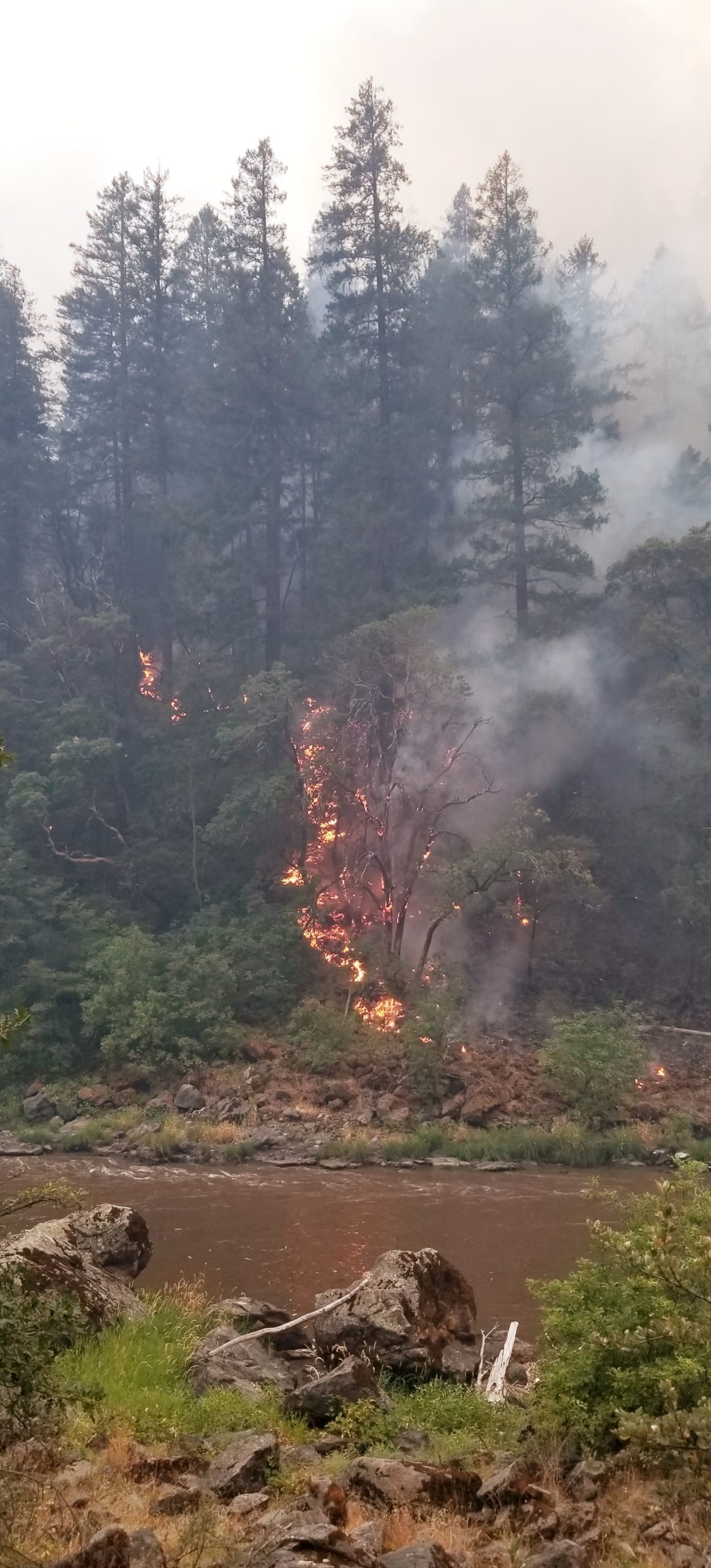 A large amount of the debris in the Klamath River came out of Humbug Creek, a salmon-bearing tributary to the Klamath River which drains the area west of Yreka, south of the Klamath River. We found this video on the Facebook account of a firefighter who was passing thru the area the next morning.