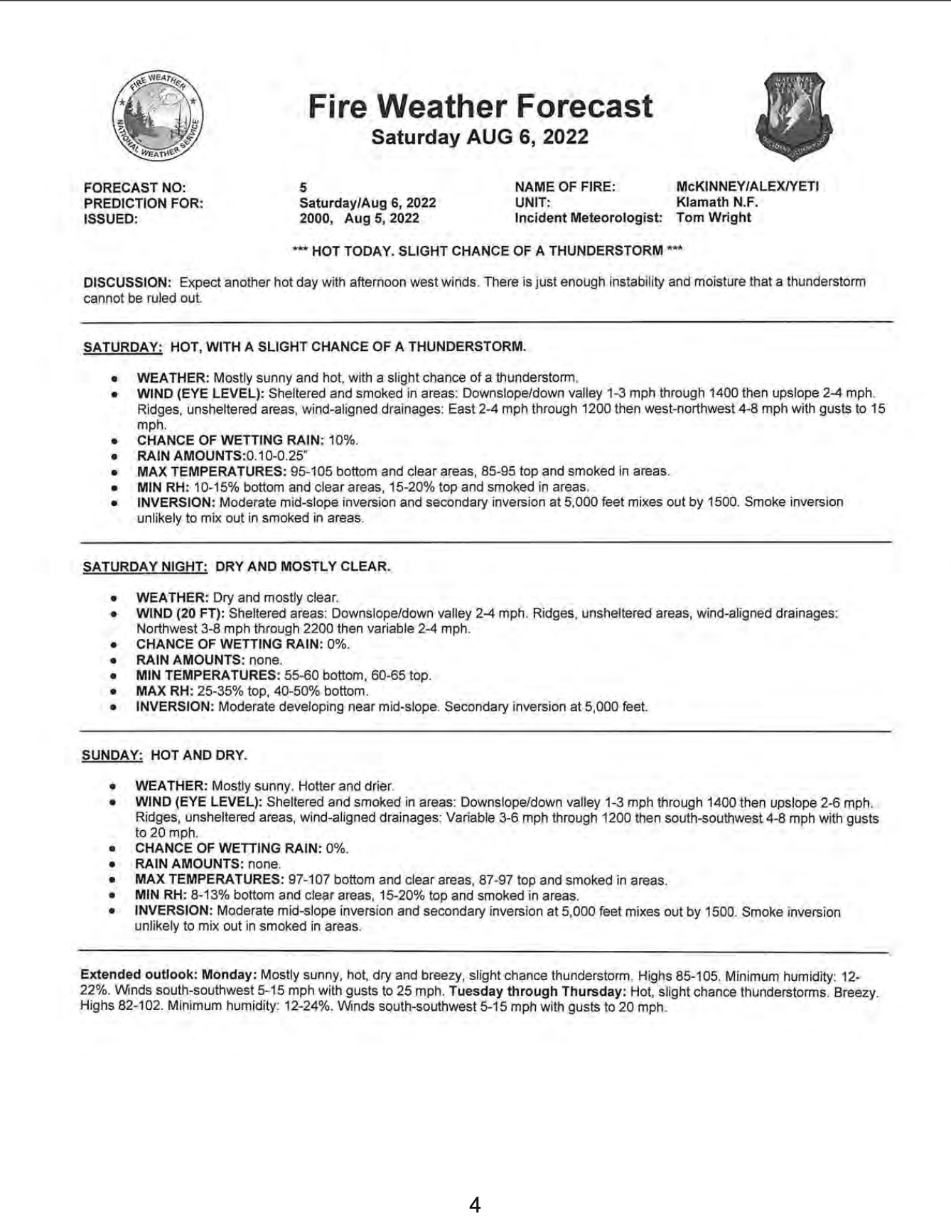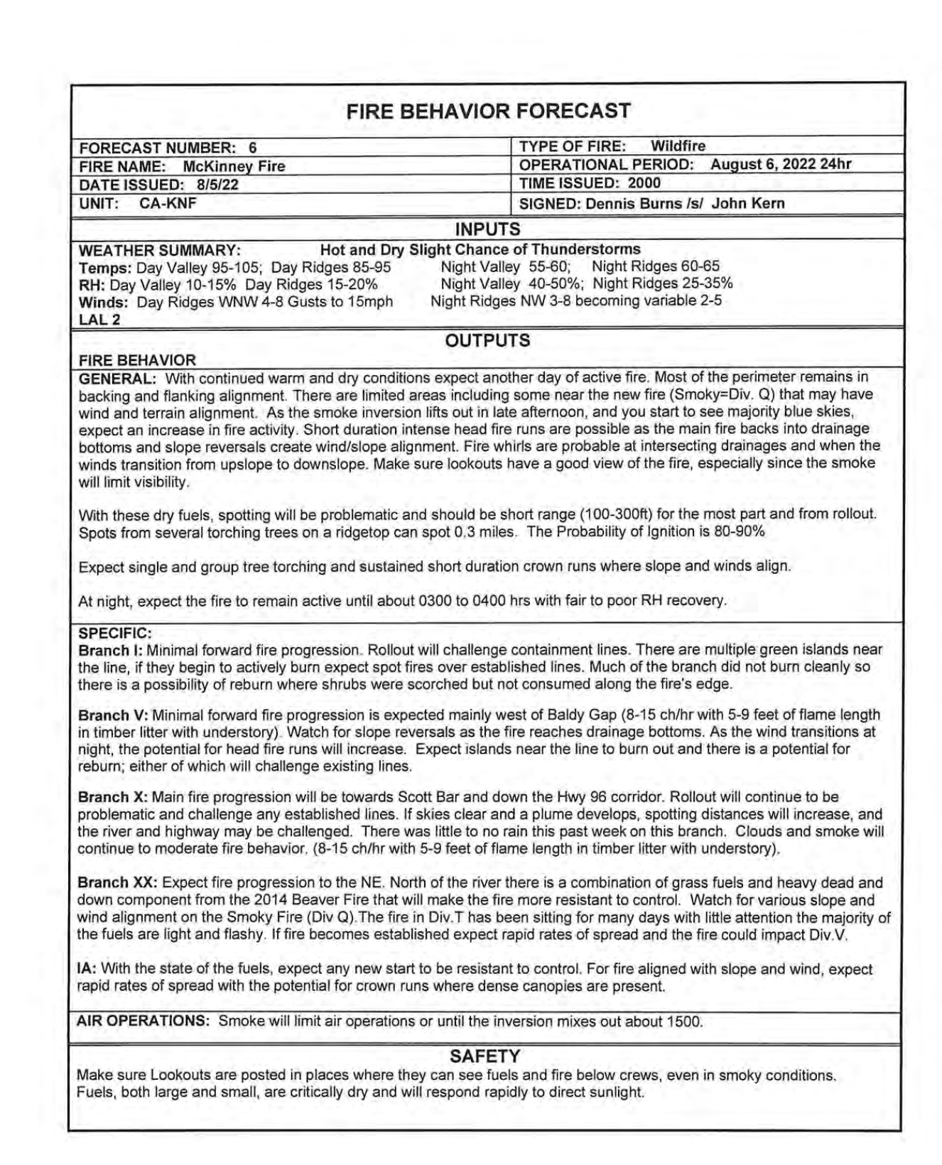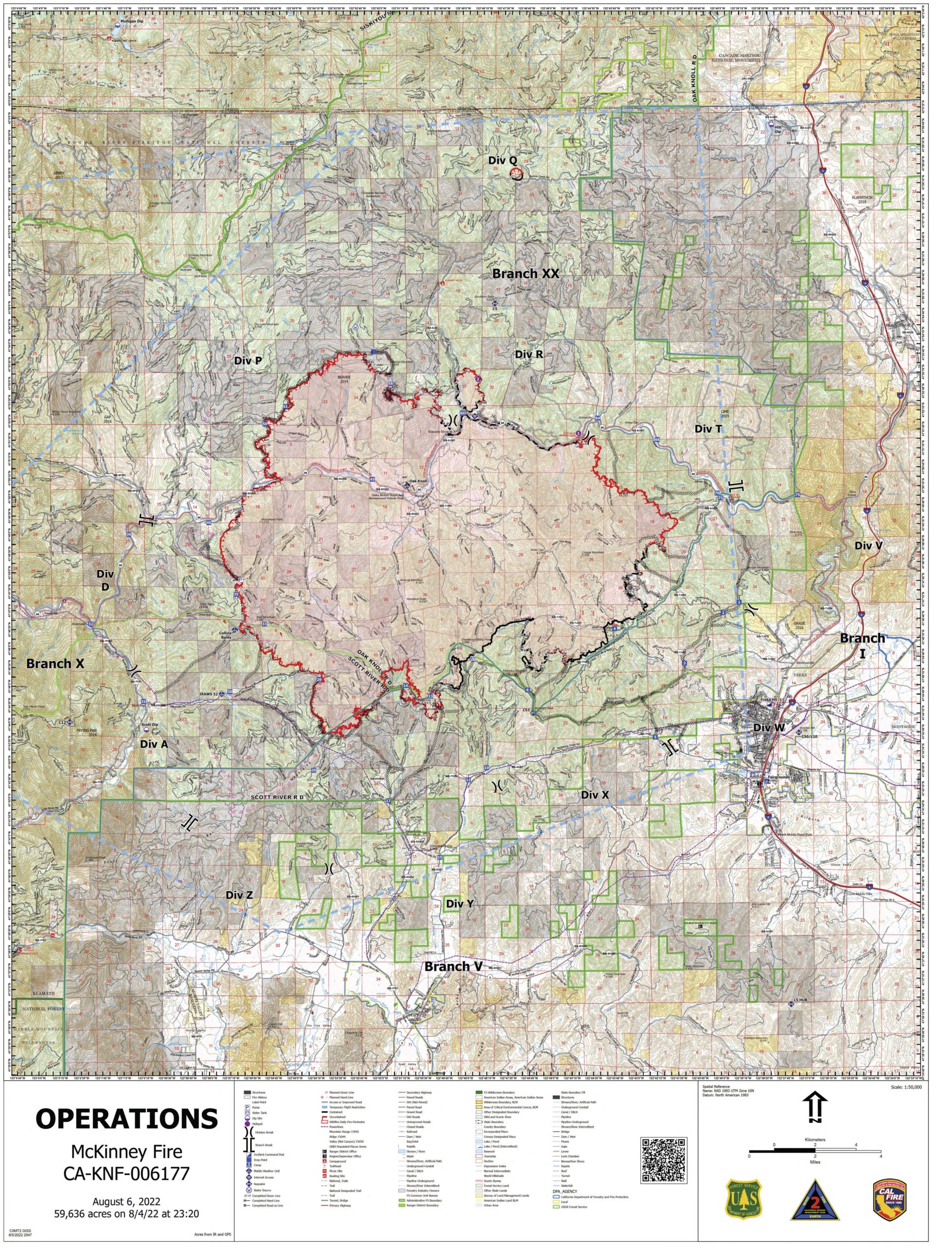 To better understand what’s happening around the fire and in our maps, click here to watch the USFS Friday, August 6 McKinney fire operational update from KNF facebook page. Here’s the Forest Service/Cal Fire map for the fire below: